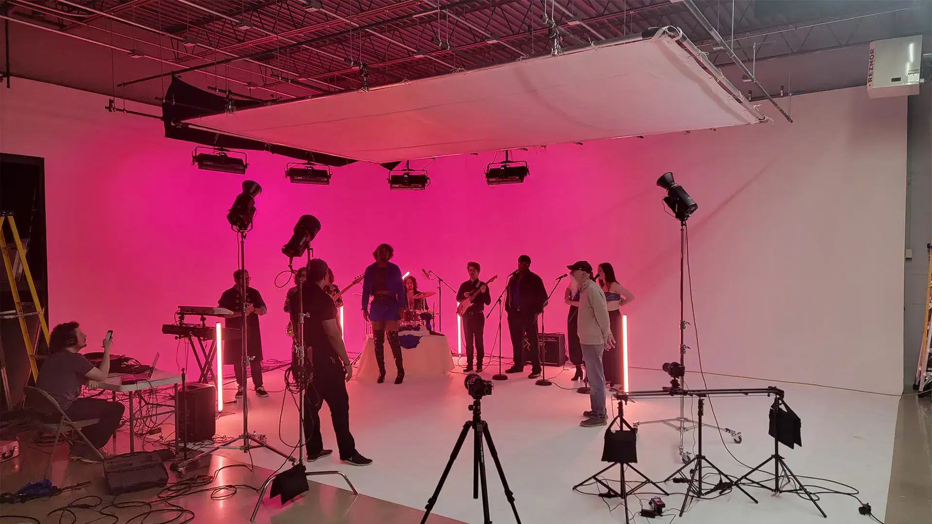 Welcome to Studio A, our expansive and versatile haven for creativity. Whether you’re working on a high-end commercial, music video, or large-scale production, Studio A provides the space and technology to bring your vision to life. This studio offers limitless creative possibilities with its expansive 40-foot Cyclorama Wall, professional-grade lighting grid, and mobile-controlled lighting for complete control over the atmosphere to enhance the visual impact of every shot. Need assistance with technical setup? Our experienced team is always ready to provide guidance and support, ensuring a seamless, stress-free experience.